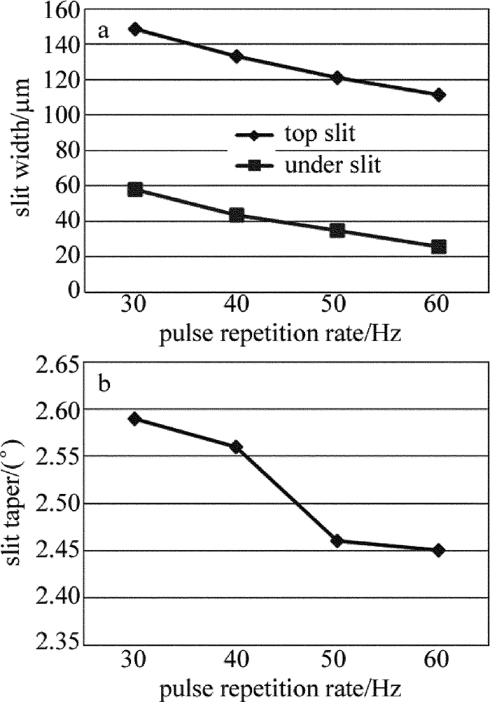 Figure 7. Slit width and taper curve with pulse repetition rate