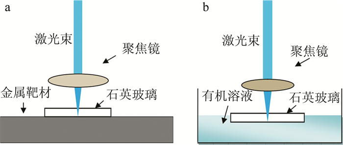 如圖 2所示,激光誘導(dǎo)等離子體刻蝕和激光背部濕法刻蝕的實(shí)質(zhì)都是利用激光透過(guò)玻璃后與靶材互相作用,產(chǎn)生等離子體來(lái)實(shí)現(xiàn)石英的刻蝕,從而克服玻璃無(wú)法直接吸收激光脈沖的缺陷,在玻璃的底面實(shí)現(xiàn)材料去除。兩者的主要區(qū)別在于激光誘導(dǎo)等離子刻蝕的靶材主要為不銹鋼、銅等金屬材料,而激光背部濕法刻蝕則常用甲苯、丙酮等有機(jī)溶劑作為激光吸收介質(zhì)。