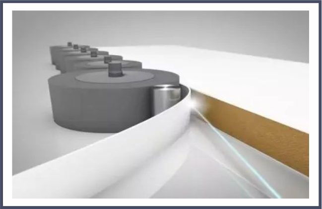 激光封邊: 通過將高能量的激光束聚合到激光封邊帶上, 高能量的激光快速融化封邊帶 的功能層, 然后通過壓輪機構, 將邊帶壓緊在工件上, 再經(jīng)過截斷、初修、精修、跟蹤倒圓 等工序,從而實現(xiàn)封邊的目的。