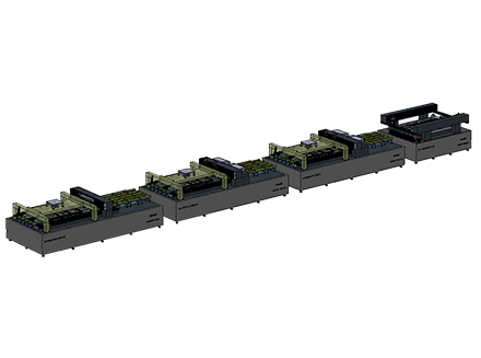 滿足剛性玻璃基底表面的薄膜類太陽能電池刻蝕,采用四臺設(shè)備分別對應(yīng)不同薄膜電池不同功能層刻蝕需求。